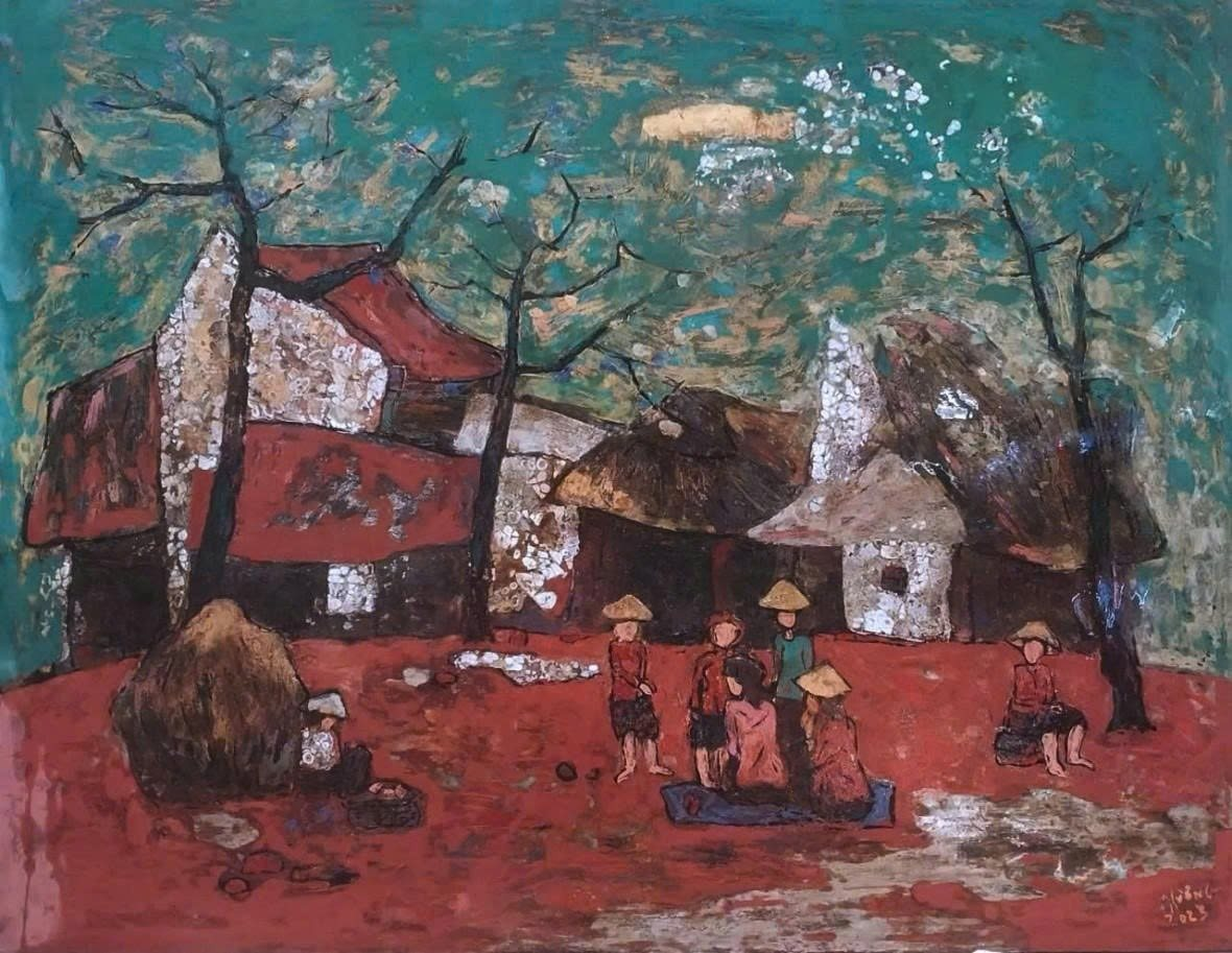 "Xóm nhỏ" - tranh sơn mài của họa sĩ Phạm Hồng Phương.