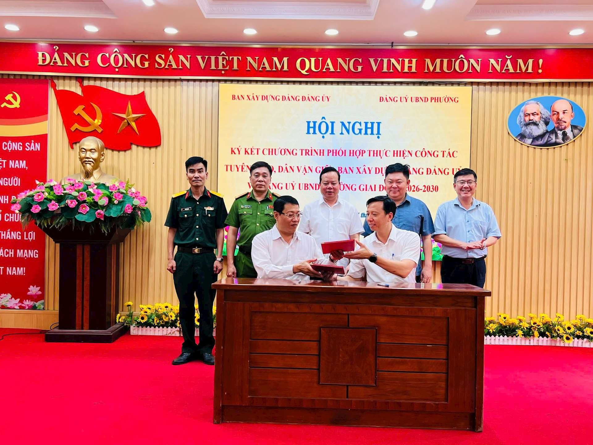 Ban Xây dựng Đảng - Đảng ủy phường đã tổ chức Hội nghị ký kết Chương trình phối hợp công tác tuyên giáo, dân vận với Đảng ủy UBND phường, Công an phường và Ban Chỉ huy Quân sự phường giai đoạn 2026 - 2030, đồng thời triển khai Kế hoạch phối hợp công tác năm 2026.