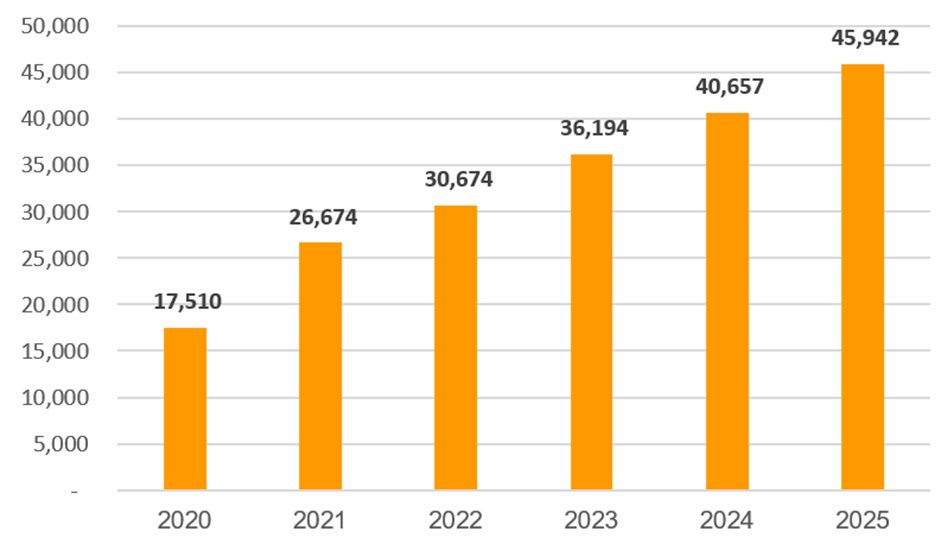 Tính đến 30/9/2025, tổng tài sản của SHB đạt 852.695 tỷ đồng, tăng 14% so với cuối năm 2024, từng bước hướng tới con số 1 triệu tỷ đồng năm 2026.