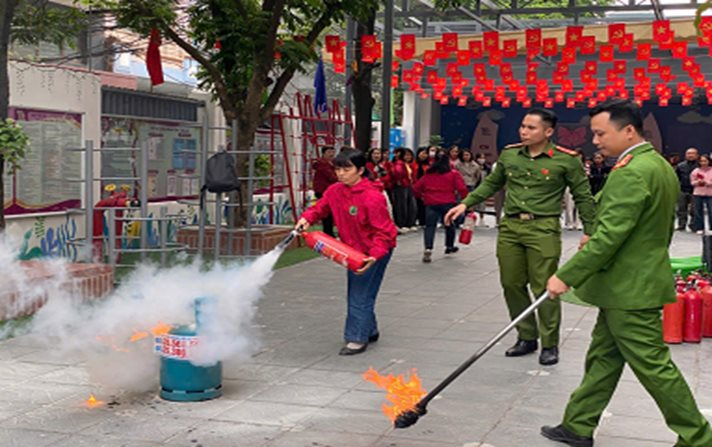 Bên cạnh phần lý thuyết, cán bộ, nhân viên, giáo viên các trường mầm non Nhân Chính còn được thực hành sử dụng bình chữa cháy xách tay, triển khai phương án chữa cháy và cứu nạn tại chỗ, diễn tập tình huống giả định cháy tại khu vực bếp ăn và phòng học. Thông qua phần thực hành, cán bộ, giáo viên nắm vững hơn các thao tác, kỹ năng xử lý ban đầu, nâng cao khả năng tự bảo vệ và hướng dẫn an toàn cho học sinh.